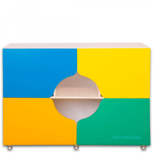 На дверках присутні фігурні вирізи, що дозволяє підвищити безпеку дітей, шляхом відмови від використання виступаючих ручок.