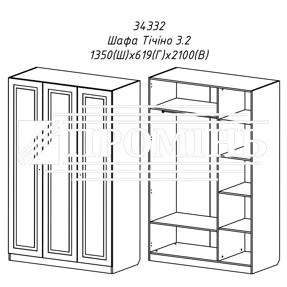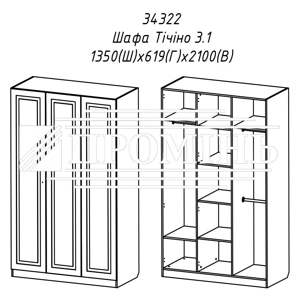 Шафа 3-х дверна "Тічіно"