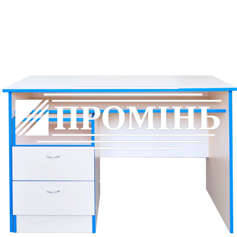 Робочий стіл виконано з якісного ДСП 16 мм, класу емісії Е1 , обклеєної по торцях протиударною кромкою ПВХ товщиною 2 мм та 0.5 мм. Для кріплення використовується якісна фурнітура.