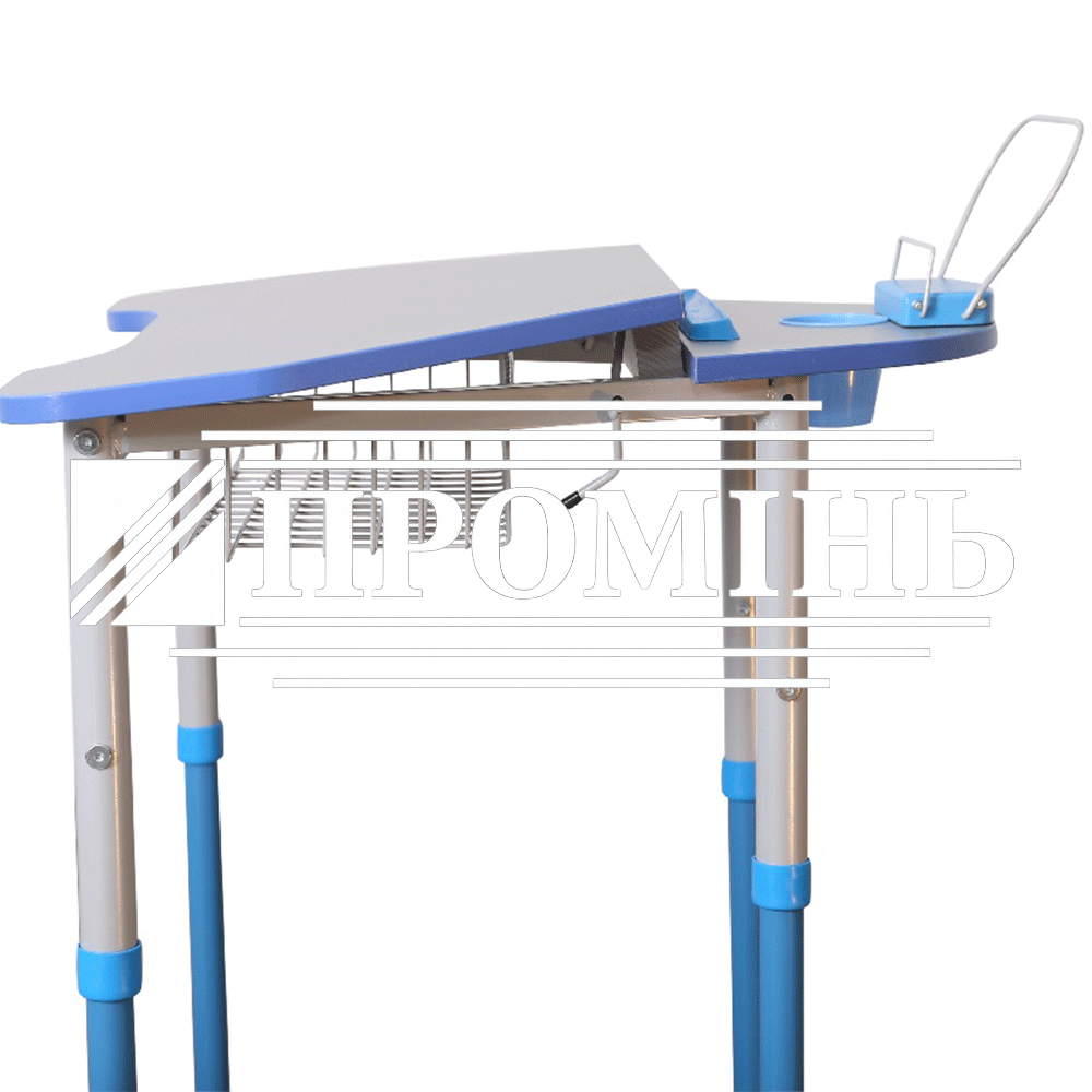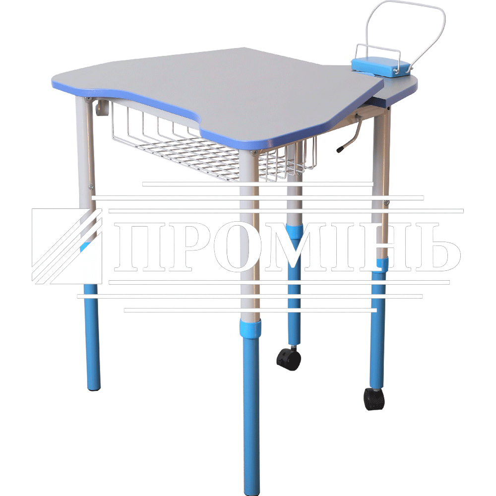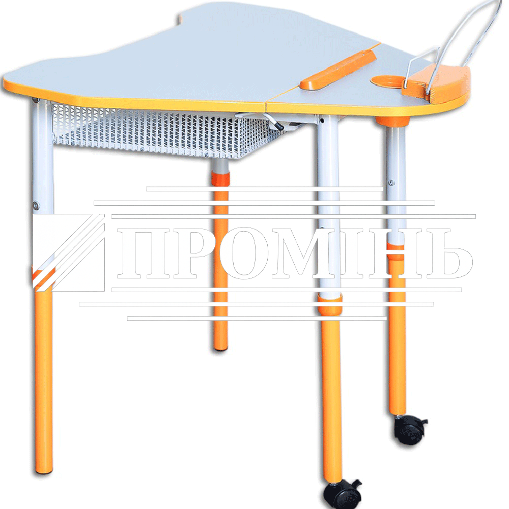 На каркасі стола встановлений механізм підйому стільниці, що дозволяє їй займати два положення 0° та 8°. Стільниця складається з двох частин – рухомої та нерухомої. На нерухомій частині встановлюється «стаканчик» для канцелярських приладь та пюпітр.